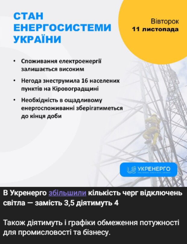 Енергетичні компанії попереджають, що ситуація в енергосистемі залишається нестабільною і може змінюватись в залежності від погодних умов та умов безпеки.